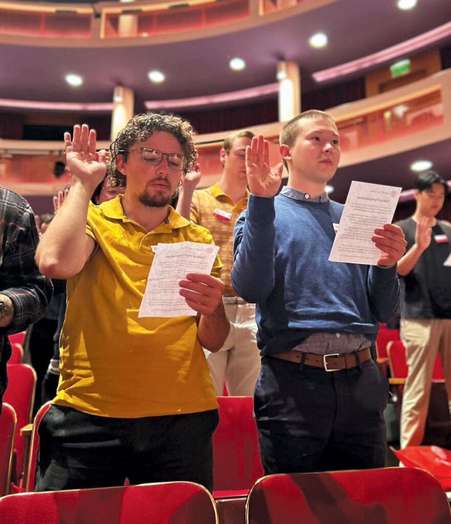 On the morning of August 19, under a bright, blue sky, members of the J.D. Class of 2028 made their way from Myron Taylor Hall to the Schwartz Center for the Performing Arts, where they gathered for the start of Orientation. What came next marked a new tradition. For the first time, Cornell Law students were formally administered an oath of professionalism at the start of their legal education.