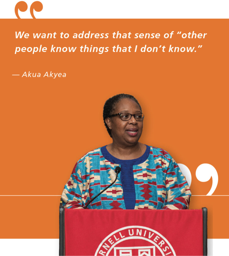 This fall, students will have the opportunity to attend both a Public Interest Law Academy and a major law-firm reception at the Ithaca Convention Center, where forty firms, most from New York City, will send attorneys and alumni to meet students. “It’s not a job interview,” Akyea emphasized. “It’s a low-pressure opportunity to talk to practitioners, to hear what their work really looks like day to day.”